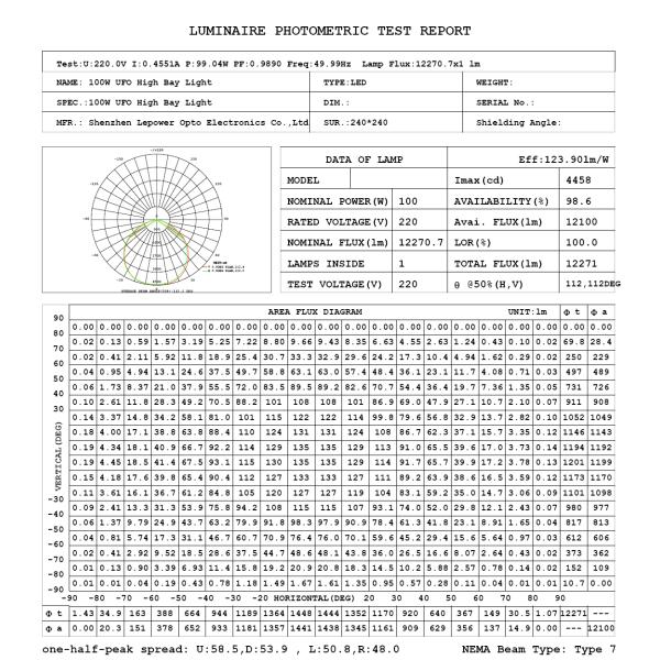 | Efficiency | >120Lm/W |